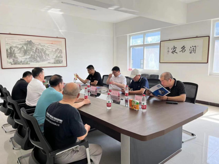 7月15日,中国食品和包装机械工业协会秘书长崔林、东博自动化设备有限公司总经理孙书义一行,在沧州市广东会会长吉卫华、秘书长赵雪晖陪同下,赴沧州名家包装机械科技有限公司考察调研,和公司领导钱书印、钱强进行了深入交流。崔秘书长对沧州名家包装机械科技有限公司的发展经营给予了充分肯定,并就下一步发展提出建议,他指出,名家包装机械公司可在技术升级改造、以及区域带动宣传推广等方面重点关注。同时,吉会长建议公司应在团体标准制定等方面作出努力。
