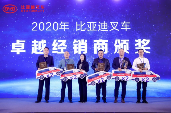 大会同时颁发了非凡营销奖、卓越经销商奖项,也对在2020年销售业绩表现突出的经销商进行了奖励,以感谢他们对比亚迪叉车发展做出的杰出贡献。