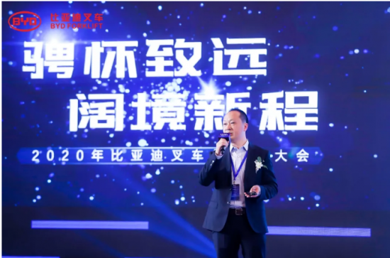 接下来,由比亚迪叉车总经理毕国忠先生致辞,毕总首先对在座嘉宾的莅临表示感谢,并指出2020年受疫情影响,对诸多行业来讲都是较为艰难的一年,但比亚迪叉车在此种市场环境下,依然实现了逆势增长,面对汹涌的浪潮和百变的形态,我们依然坚守于产品本身的价值。