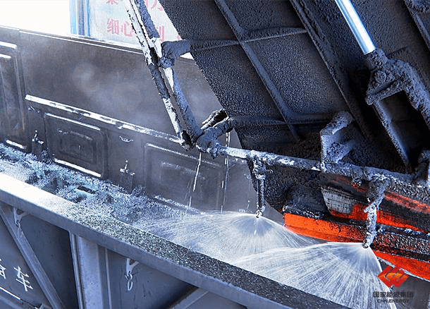 图为煤炭外运喷洒防冻液