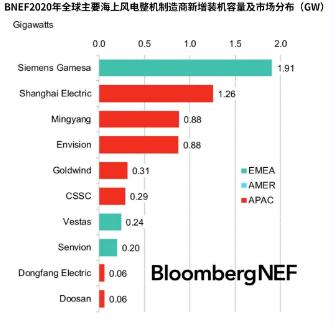 前三甲:西门子歌美飒、上海电气、明阳智能排名前三,其中上海电气、西门子歌美飒海上风电装机均超过1GW,明阳智能后来居上,从2019年的第6名上升到前3名。